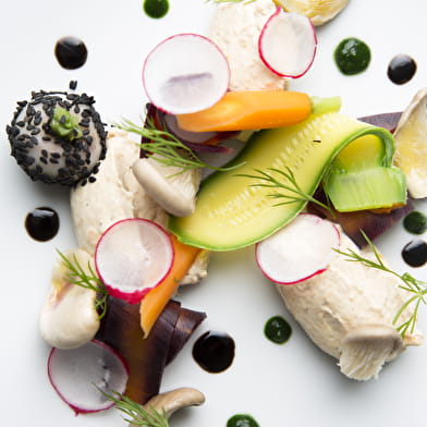 At the restaurant table, you'll enjoy fair, modern and balanced cuisine, made with locally grown produce or produce that respects traditions and the environment. To accompany this inventive cuisine, we offer a wine list featuring several hundred references, from Grands Crus to wines from up-and-coming estates carefully selected by the owner.